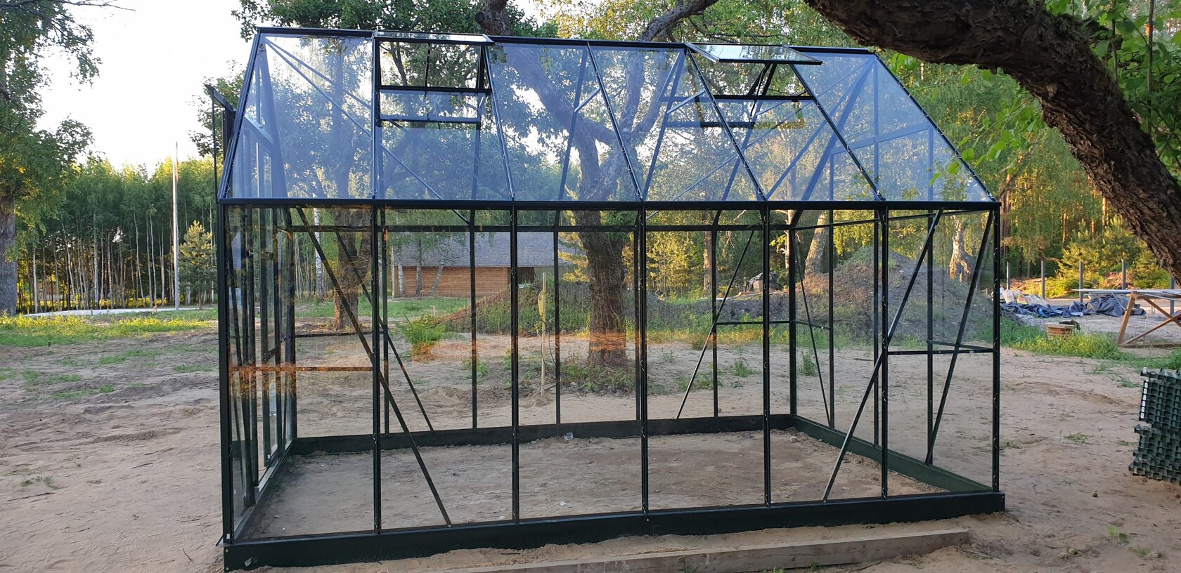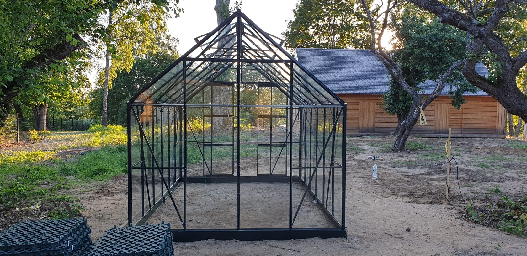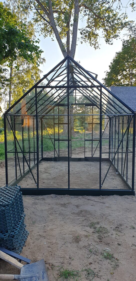 Pas klientą sėkmingai sumontavome stiklinį šiltnamį UNIVERSAL 148.