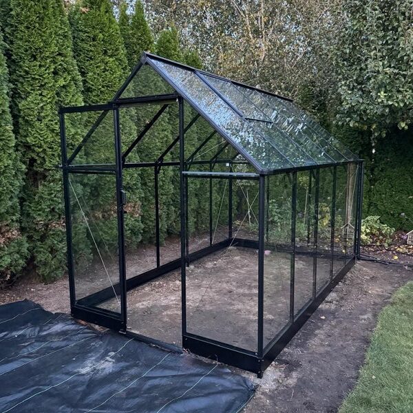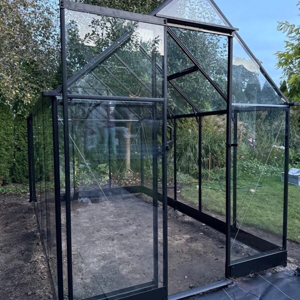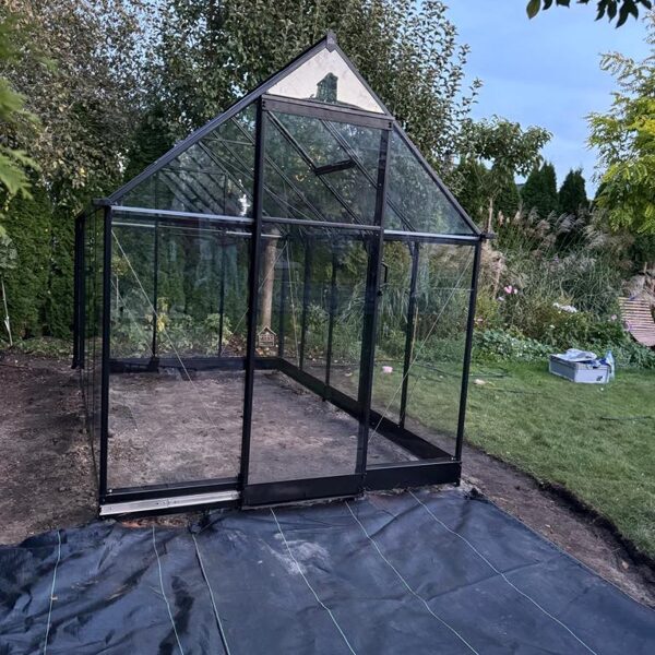 🌿✨ Dar vienas džiaugsmingas momentas mūsų klientų kieme – sumontuotas stiklinis šiltnamis Qube 610!